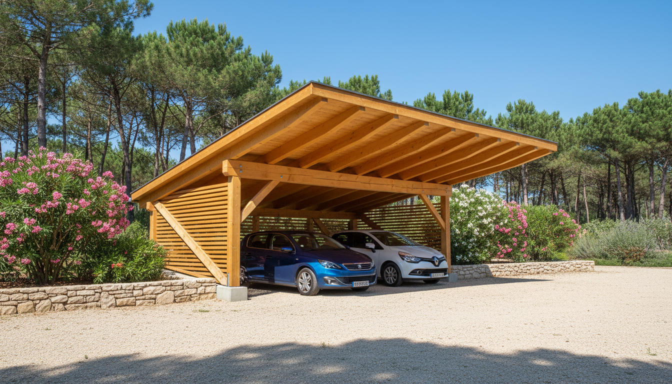 Le carport Autoportant s’impose comme une solution autonome, élégante et polyvalente, ne nécessitant aucun appui contre une structure existante. Entièrement conçu sur mesure en bois massif, il offre une liberté totale d’implantation, que ce soit au centre d’une cour, en limite de propriété ou en complément d’un aménagement extérieur. Sa structure robuste permet l’ajout d’un bac acier pour une protection optimale et peut être pensée pour accueillir des panneaux photovoltaïques, transformant ainsi un simple abri en véritable source d’énergie.