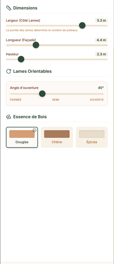 Ce configurateur constitue un avant-projet visuel. Il ne remplace pas une étude technique complète, indispensable pour garantir la durabilité, la conformité et la performance de l’ouvrage.