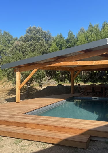 Pool-House et Cuisine d’Été en Bois compatibles photovoltaïque Aubenas sud Ardèche