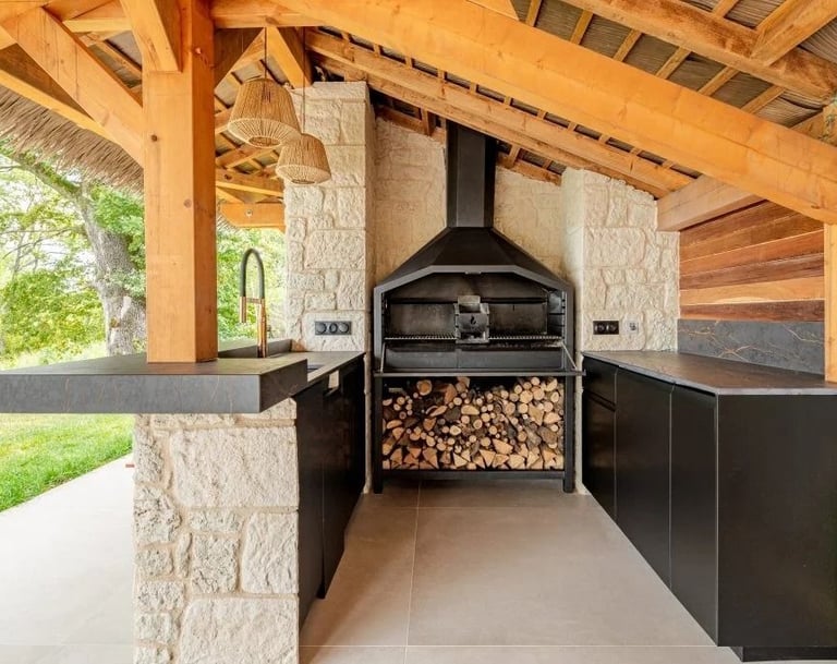 Pool-House et Cuisine d’Été en Bois Compatible compatibles photovoltaïque